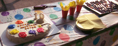 Thursday was Michael's first day back to work. He managed to get his car started so we could take it to the mechanic, then I carted him to work. I came back home to do make up work and normal school and then off to teach English. Then I had to come home and prepare for Wilbur's BIG birthday party... make the cake, get the crafts together, etc. Then back to the high school to get M and back home to fix dinner and finish party plans.